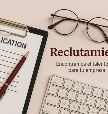 Reclutamiento: encontramos y atraemos al talento ideal para cada posición, asegurando un proceso ágil, humano y alineado con la cultura y valores de cada empresa.